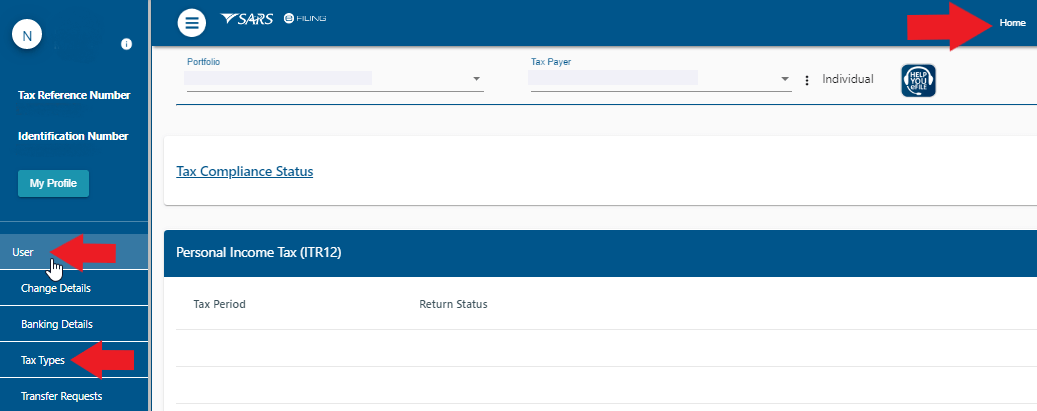 Once signed into eFiling, click on the Home tab, then click User on the left hand side