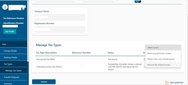 Next, click on Manage Tax Types to edit the access to your tax types.