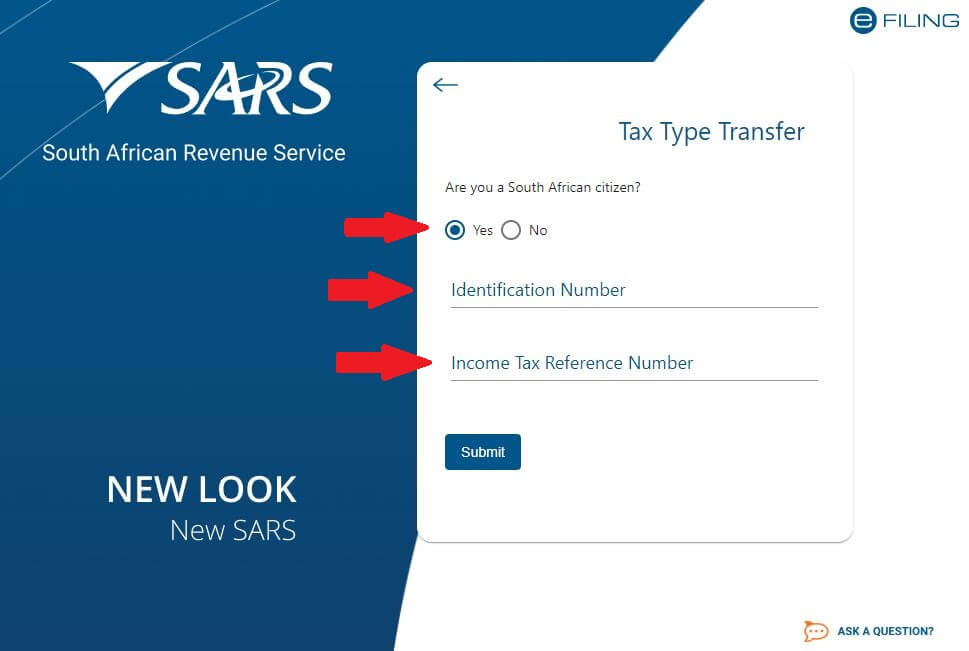 Enter your ID if you are a South African Citizen or Passport Number if you are not a SA citizen and enter your Income Tax Reference Number